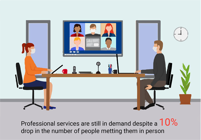 There is much demand for professional services now, and COVID has impacted the workplace with the future of work changing rapidly. The human interaction element has been reduced from the equation, and customers have adapted to that. We can see that in 2016, meeting in a professional office was the primary way of meeting with suppliers. However, perception has shifted, and meeting in smaller areas outside of an office or even online has become a widely accepted way of conducting business in the future of work.