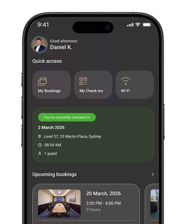 check‑ins, streamlined bookings, secure connectivity, and intelligent workspace management.